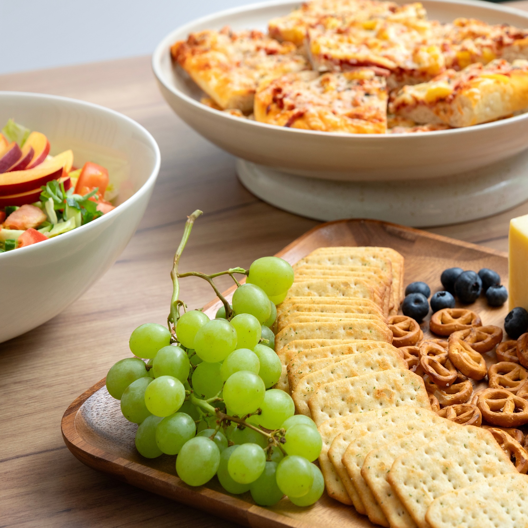 Pizza, salaatti ja alkoholiton juoma /hlö